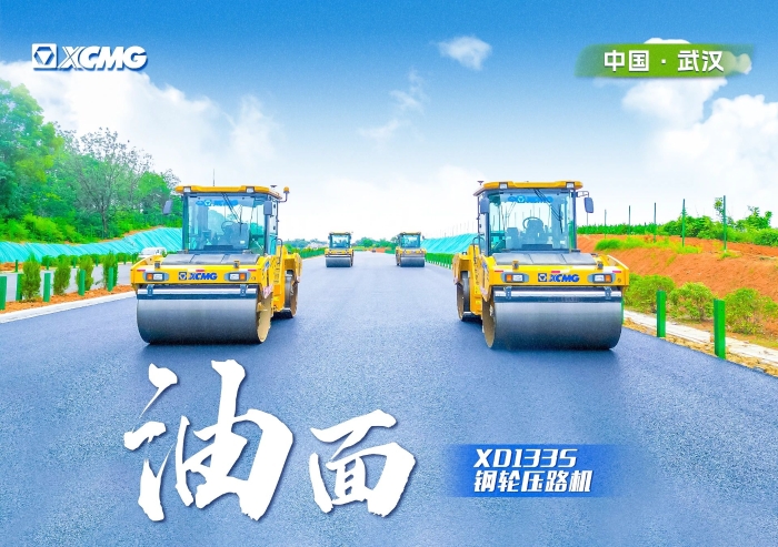 緊跟著攤鋪工作上場(chǎng)的,是我們的老朋友——4臺(tái)XD133S雙鋼輪壓路機(jī),由它們進(jìn)行路面初壓及復(fù)壓。這款壓路機(jī)誕生之出就備受矚目,已經(jīng)征戰(zhàn)過各類重大工程;尤其它的柔性行駛起??刂萍夹g(shù),能有效消除整機(jī)對(duì)路面的推擠,避免產(chǎn)生擁包,在提高路面平整度方面的實(shí)力有目共睹。