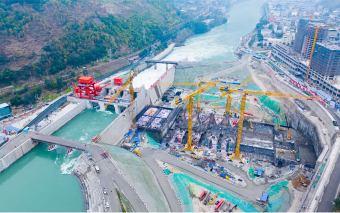 該水電站位于四川省樂山市金口河區(qū)境內,是四川省“十四五”重點建設項目,項目完成后,總裝機容量30萬千瓦,預計年平均發(fā)電量15.03億千瓦時,對促進國家清潔能源基地建設、實現(xiàn)“雙碳”目標意義重大。項目主要設有五孔泄洪閘、發(fā)電廠房、兩岸混凝土重力壩、魚道等水工建筑物,壩體最高54米。