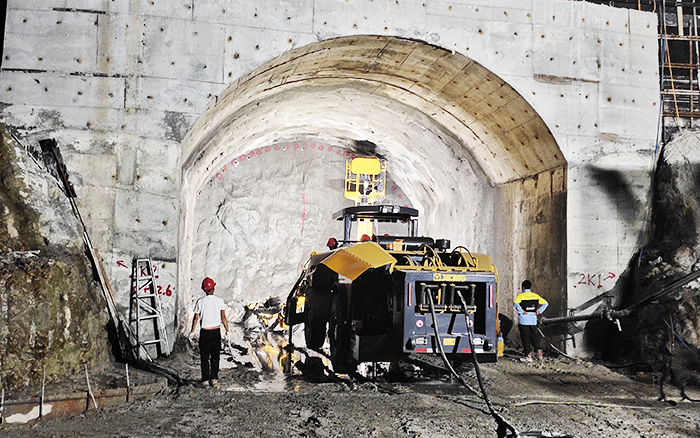 2號引水洞最先進行鑿巖臺車施工,該段項目為Ⅱ類—Ⅲ類巖層,其中Ⅱ類巖層較多,科學組織、合理安排,緊盯關鍵工序的管理與施工,在保證安全和質量的前提下極大提高了施工效率,破解了硬巖施工等難題,徐工鑿巖臺車單日進尺12米左右。