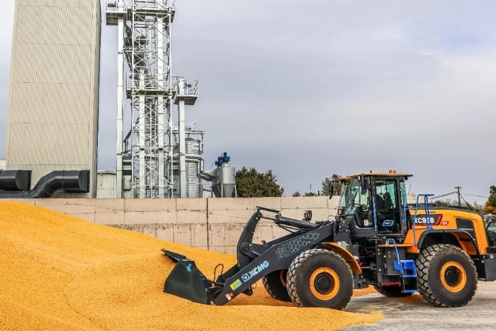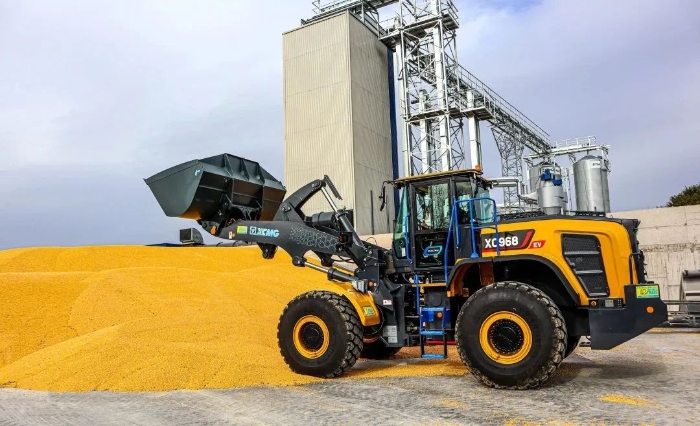眼下,在歐洲某農(nóng)產(chǎn)品加工廠,徐工XC968-EV純電動(dòng)裝載機(jī)正迅速揮動(dòng)大臂,翻動(dòng)室外晾曬的谷物。