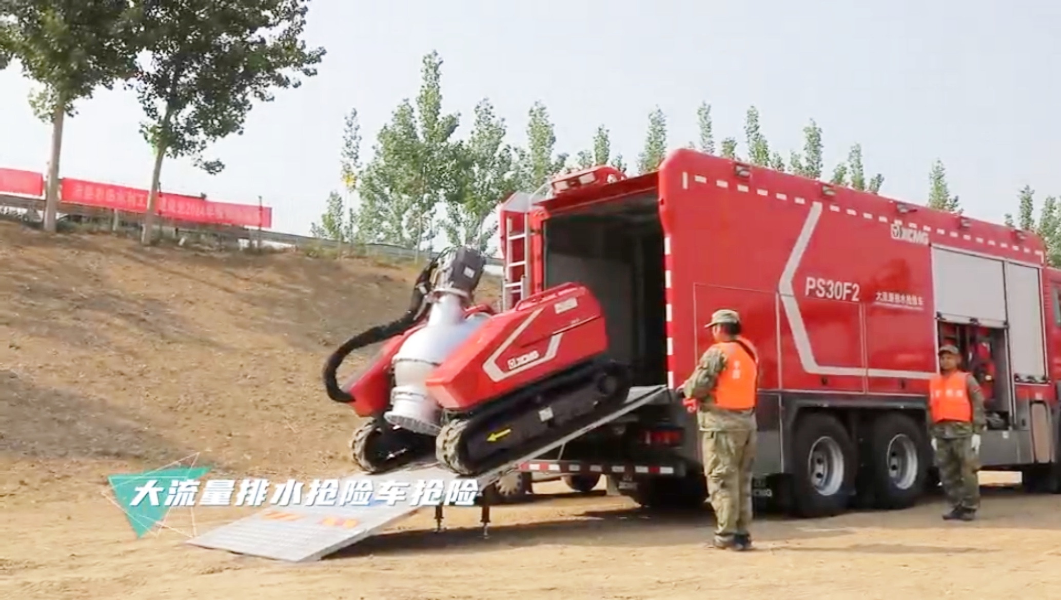 徐工子母式排水搶險車,也在演練中展現(xiàn)了其遠(yuǎn)程分離控制的獨特優(yōu)勢。