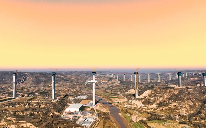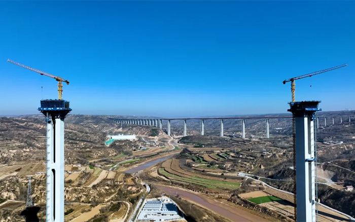 在廣袤的隴東地區(qū),寒風凜冽,穿過層層大霧,俯瞰馬蓮河特大橋,似玉帶嵌入黃土高原,矗立河道旁的橋墩似根根“擎天柱”,徐工S1系列塔機正如火如荼加速建設,用奮斗的激情創(chuàng)造橋梁施工典范。