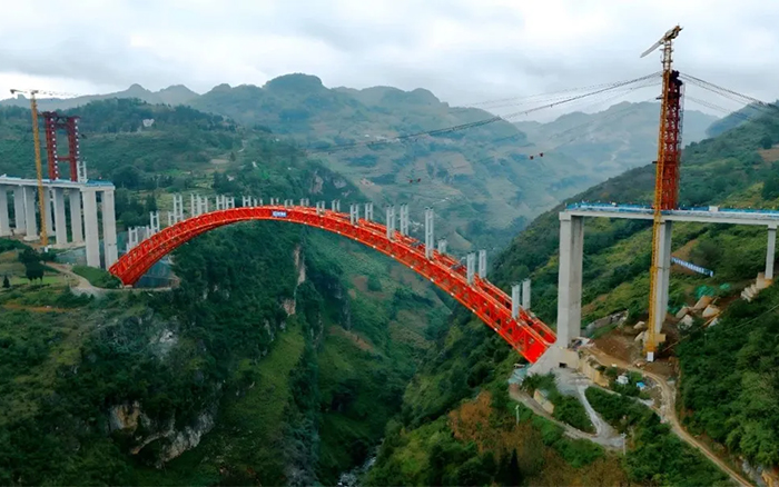 “這座橋工期緊,技術(shù)難度大,吊裝過程中構(gòu)件結(jié)構(gòu)重、空間姿態(tài)調(diào)整難度高,給項目施工帶來了一定困難?!卑姿犹卮髽蝽椖康匿摻Y(jié)構(gòu)負責(zé)人毛宗宇說。白水河特大橋主橋采用跨徑340m的上承式鋼管混凝土變截面桁架拱橋,全橋共設(shè)計58個吊裝節(jié)段,在百米高空中完成拼裝,而誤差要保持在毫米級,這些為塔機施工帶來了高難度挑戰(zhàn)。