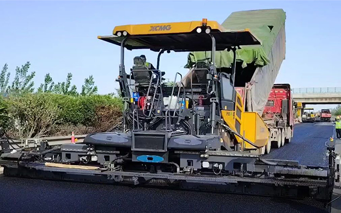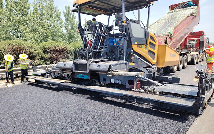 近日,淮徐高速正在進(jìn)行油面施工養(yǎng)護(hù)工程。為保障道路質(zhì)量和施工效率,施工方采用徐工RP905IV攤鋪機(jī)進(jìn)行路面的攤鋪工作。RP905IV攤鋪機(jī)是徐工熱銷款攤鋪設(shè)備之一,具有高效、穩(wěn)定和精確的攤鋪能力。本次施工中,高速公路攤鋪寬度8m,攤鋪厚度為4.8cm,RP905IV為項(xiàng)目的油面施工提供了高質(zhì)量保障。