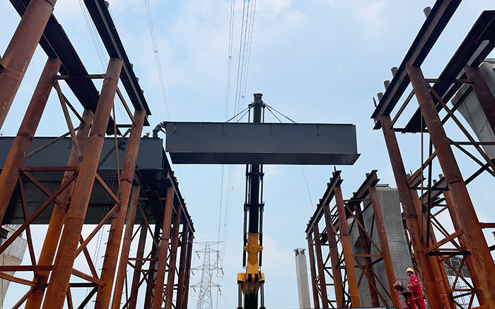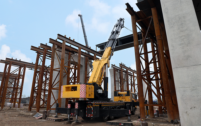 徐工SQZ8000的臂架采用五節(jié)伸縮臂,四節(jié)雙推,具有更強的起升能力及帶載伸縮能力,平均6h可完成5段結構安裝。負載敏感比例控制系統提升產品的微動性和聯動性,方便設備的精準定位安裝,大大提升安裝施工效率,確保橋面結構鋪設搭建任務的順暢收官。