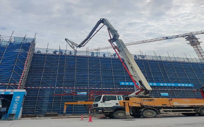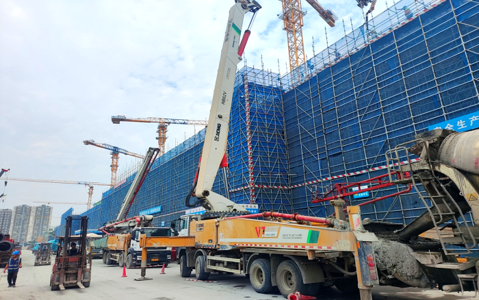 施工現(xiàn)場(chǎng),臂架林立、機(jī)器運(yùn)轉(zhuǎn),徐工成套混凝土機(jī)械聯(lián)袂出擊,新能源攪拌車、車載泵、泵車齊上陣,從混凝土運(yùn)輸、泵送施工、服務(wù)保障等方面守護(hù)項(xiàng)目順利進(jìn)行。