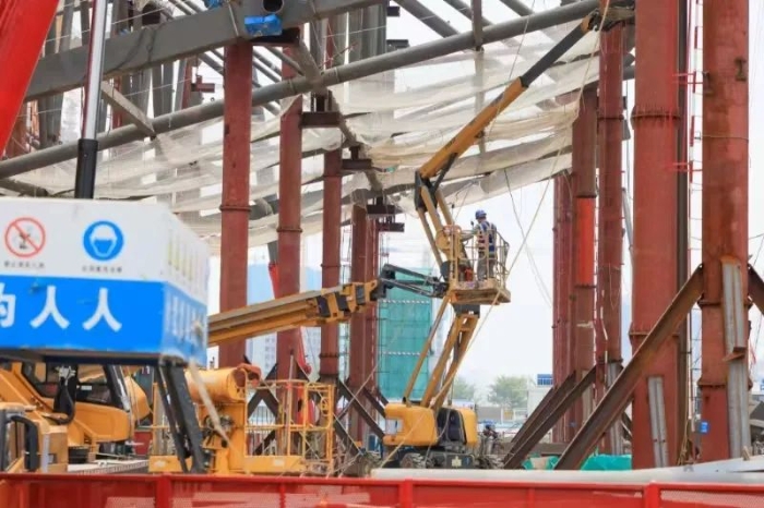 忙碌的工地上,隨處可見“徐工金”辛勞的身影。此次參與施工的有四十余臺徐工高空作業(yè)平臺,高度從22米到40米不等,主要負責場館鋼結(jié)構(gòu)的安裝工作。