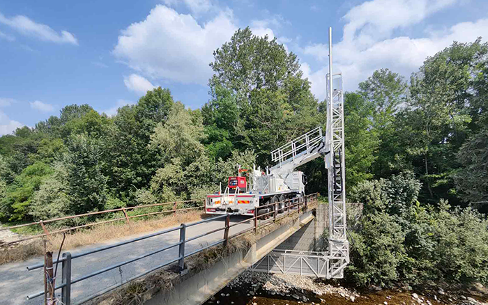 風(fēng)景秀麗的阿爾卑斯山前,一個白色臂膀半“摟”住歷史悠久的歐洲古橋……占據(jù)這張靚麗風(fēng)景照C位的,是正在進(jìn)行橋梁檢修維護(hù)的徐工橋梁檢測車。