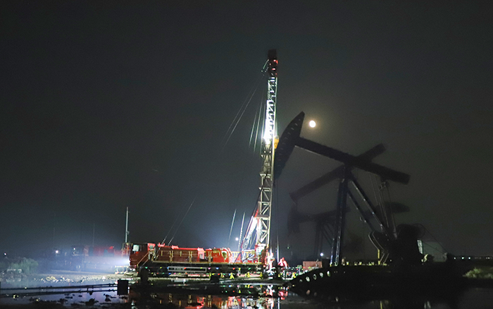 在中國北部某開采油田現(xiàn)場,一場“綠色修井”作業(yè)正如火如荼。20余米的井架高聳佇立,井口流出的油水經(jīng)自動導流裝置流至集油槽中,點滴不落地。