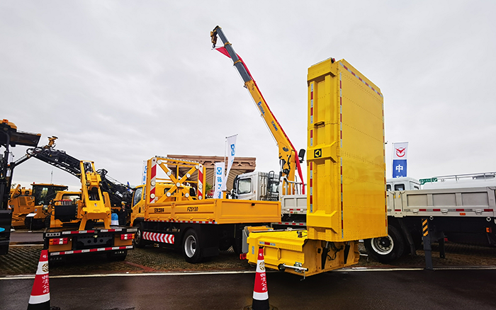 徐工FZS120K防撞緩沖車首次亮相展會,它是行業(yè)首款120k防撞緩沖墊,達到中國高速最高限速,提供全速段防護;航空級鋁材,通過航空級防腐蝕測試、耐高低溫測試、振動測試、防火測試;雙段設計,高低強區(qū),保證小碰易修,中碰易換;大型升降燈牌,自由控制,可升至最高 4.5米,保證可視度;可選裝雷達預警系統(tǒng),提前檢測、提前預警;折疊式防撞墊,減小整車風阻,降低油耗。