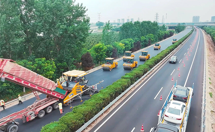 自2022年下半年開始,徐工成套道路機械就已多次參與過連霍高速的施工工作,受到業(yè)主方的肯定。2024年下半年,徐工道路明星“工友團”再次閃亮登場,憑借自己的智慧“大腦”,在連霍高速的養(yǎng)護工程建設中大放異彩。施工由徐工超大寬度攤鋪機RP2405和壓路機XD133S這兩款高性能設備聯(lián)袂,在攤鋪厚度為100px的瀝青上面層進行高效施工。憑借超強的作業(yè)能力和先進可靠的產(chǎn)品性能,在高速路面上精準實現(xiàn)一次攤鋪成型。