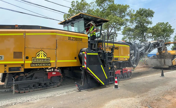 為了徹底修復(fù)路面,減輕交通壓力,盡快恢復(fù)通車,同時降低施工成本,經(jīng)過施工方案論證,采用可一次再生整幅車道的徐工XLZ3805R冷再生機的高效就地冷再生技術(shù)進(jìn)行大修。