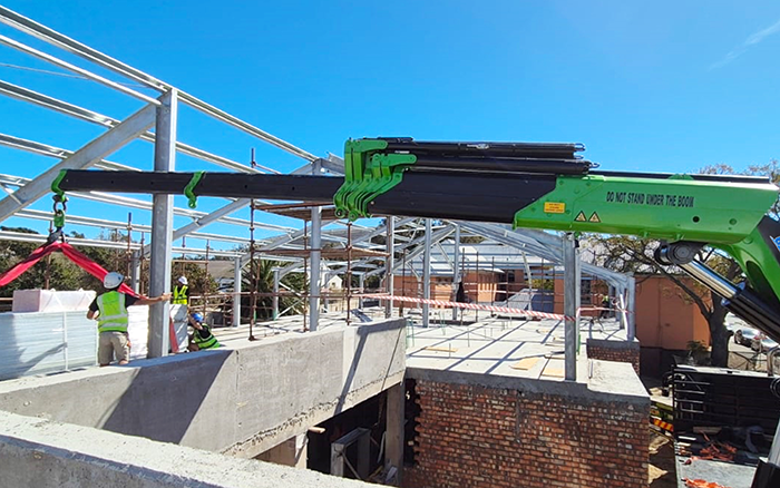 在海外某建筑工地現(xiàn)場可以看到,徐工GSQZ860折疊臂隨車起重機加裝兩節(jié)手動臂,輕松跨越建筑物二樓復雜的鋼結(jié)構(gòu),完成了高處的物料轉(zhuǎn)運作業(yè),優(yōu)越跨障能力和穩(wěn)定作業(yè)表現(xiàn)獲得了現(xiàn)場施工人員的認可和好評。