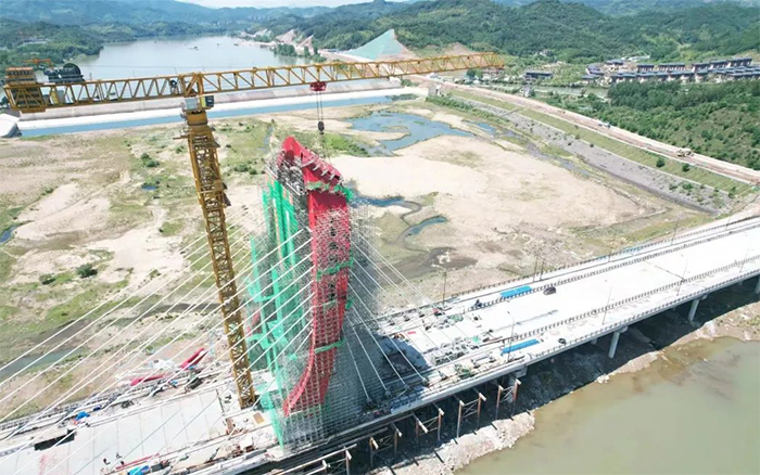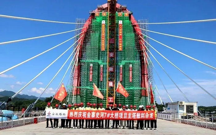 金寨史河7#大橋項(xiàng)目主塔順利合龍