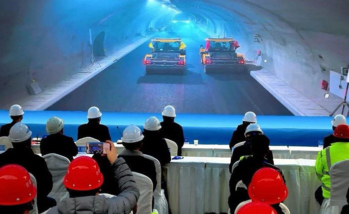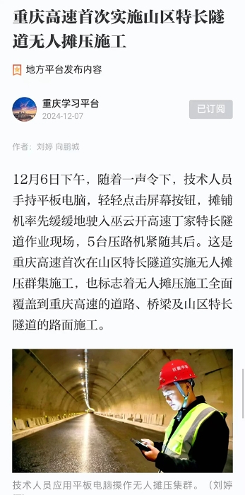 來看徐工智慧→重慶首次山區(qū)特長隧道無人攤鋪施工