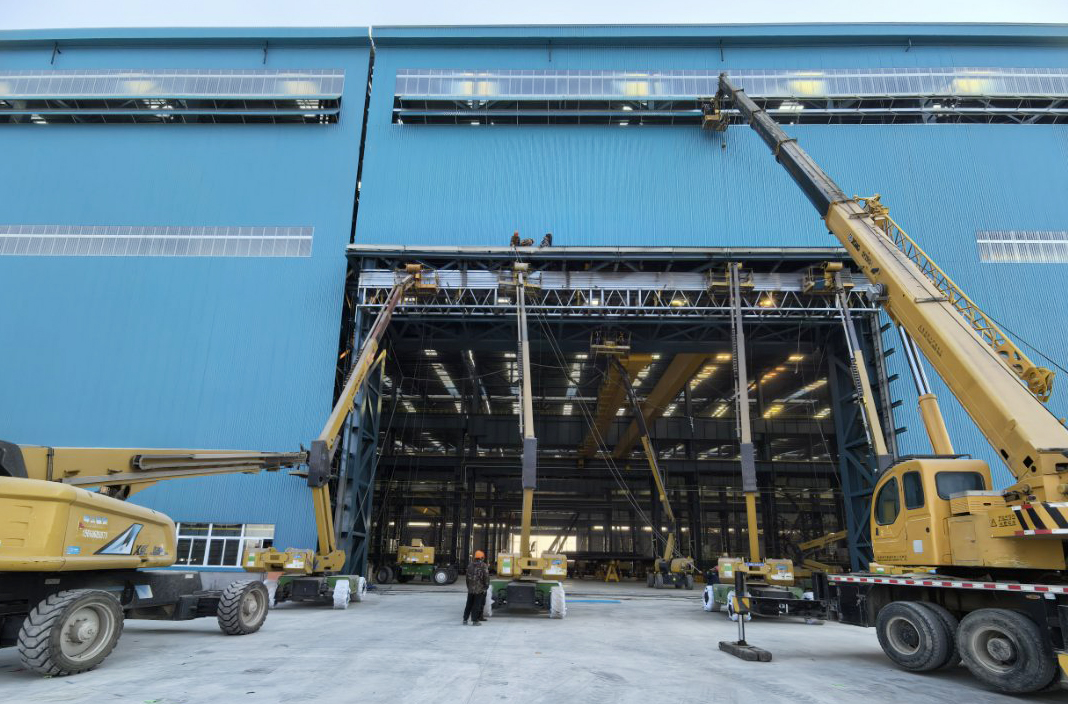 在恒力重工三期廠房建設(shè)工地,近10臺(tái)30米級(jí)徐工高空作業(yè)平臺(tái)正大顯身手,忙碌于車(chē)間內(nèi)外鋼結(jié)構(gòu)建設(shè)與墻面裝飾等精細(xì)作業(yè)。