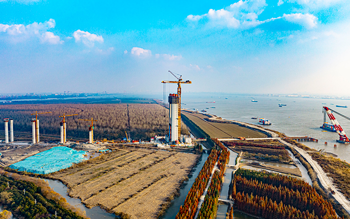 張靖皋長江大橋蜿蜒向前