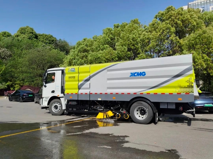 活動(dòng)現(xiàn)場(chǎng),徐工純電動(dòng)洗掃車(chē)以高效協(xié)同作業(yè)模式完成路面沙石的清掃、地面清洗、路面灑水降塵等全流程操作,設(shè)備所到之處,路面煥然一新。其低噪音、零排放的特性與精準(zhǔn)清掃引發(fā)關(guān)注。