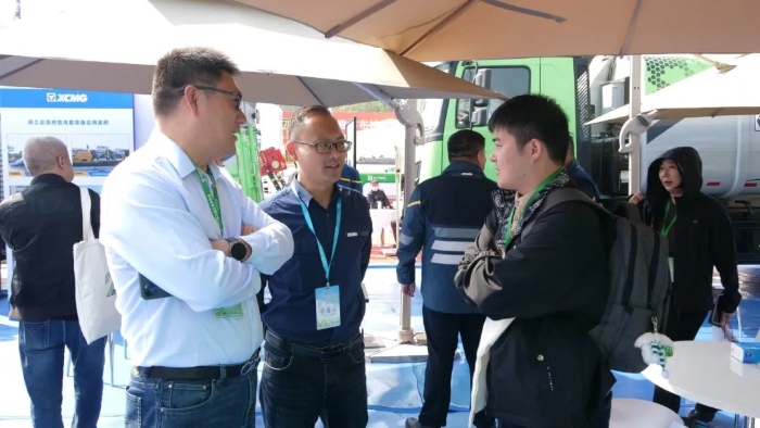 徐工新能源產(chǎn)品在展會(huì)的精彩亮相,吸引了大批來(lái)賓前往參觀咨詢(xún)。徐工環(huán)境相關(guān)領(lǐng)導(dǎo)陪同協(xié)會(huì)會(huì)長(zhǎng)陳永生一行在徐工展位參觀交流,向其詳細(xì)介紹了徐工參展的新產(chǎn)品的特色亮點(diǎn)及產(chǎn)品優(yōu)勢(shì),并表示徐工將不斷推進(jìn)新能源產(chǎn)品技術(shù)研發(fā),用更多優(yōu)質(zhì)產(chǎn)品搶占高端市場(chǎng),全面推進(jìn)產(chǎn)業(yè)高端化、智能化、綠色化、服務(wù)化、國(guó)際化“五化”轉(zhuǎn)型升級(jí)。