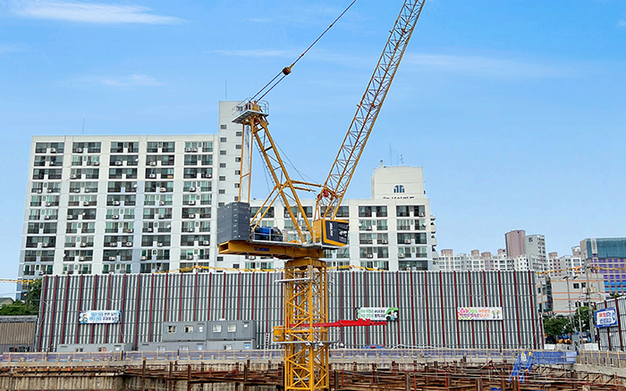 在韓國首爾,徐工塔機參建當?shù)刂R產業(yè)園項目,藍天白云之下,兩臺徐工XGL300-18S格外耀眼。韓國建筑密度大,項目施工空間較為有限,動臂塔機充分滿足當?shù)亟ㄔO需求。
