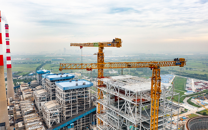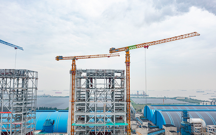 側(cè)望長江畔,機(jī)器轟鳴、江水潺潺,華能太倉電廠機(jī)組擴(kuò)建項(xiàng)目施工現(xiàn)場(chǎng)一派繁忙景象,XGT3100-160S、XGT1350-64S兩臺(tái)徐工超大塔穩(wěn)穩(wěn)矗立在高聳的鋼架間吊裝作業(yè)。
