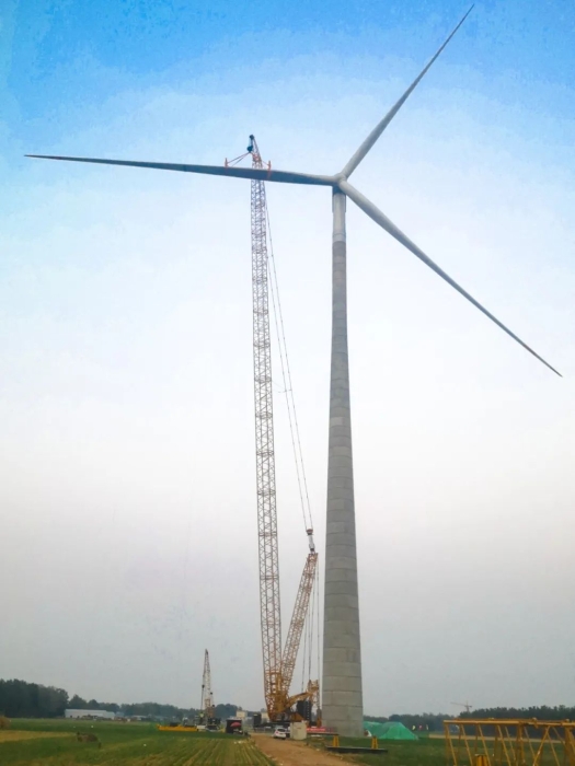 項目現(xiàn)場,XLC18000M采用180米主臂+8米副臂的超起風電工況配置,以毫米級精度,將重達135噸的風機機艙和長達107米的單片葉片,穩(wěn)穩(wěn)對接于170米高的混塔之上。其創(chuàng)新的鵝頭臂設計、高效拆裝技術,顯著提升了施工效率。