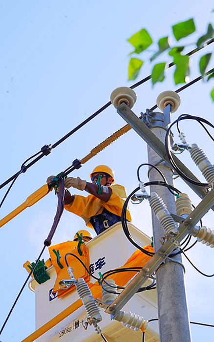 工作人員借助絕緣斗臂車,快速、精準(zhǔn)地抵達(dá)作業(yè)位置。他們身著厚重的絕緣服,有條不紊地開展更換變壓器工作。盡管汗水早已濕透衣衫,但大家的眼神中透露出專注與堅(jiān)定?!敖^緣服里像蒸桑拿,好在設(shè)備噪聲小、連續(xù)干活不‘掉鏈子’,不然真扛不住這高溫持久戰(zhàn)?!?一位作業(yè)人員抹著額頭的汗說。