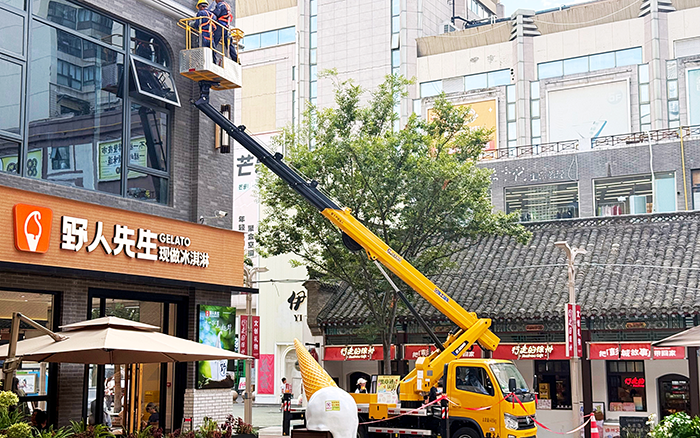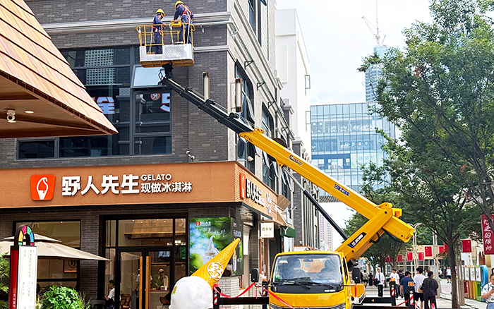 作為藍(lán)牌車(chē)型,GKS28 輕松穿梭于狹窄的街區(qū)巷道,無(wú)需復(fù)雜通行審批,到場(chǎng)后迅速進(jìn)入作業(yè)狀態(tài)。施工地周邊商鋪林立、行人如梭,施工區(qū)域被密集人流環(huán)繞,對(duì)設(shè)備的靈活性與安全性提出極高要求。