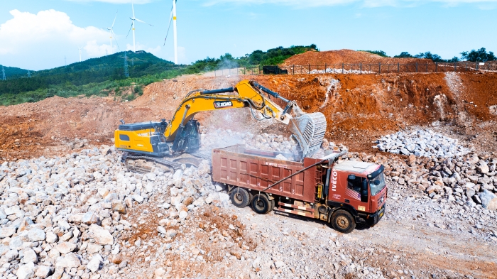 湖北宜城礦區(qū)深處,白云巖資源富集,開采作業(yè)正酣。徐工XE500GK液壓挖掘機以主力姿態(tài)投身于繁忙的開采隊伍當中,以卓越性能與可靠品質,贏得施工方高度認可,成為這片堅硬巖層中名副其實的“掘金巨無霸”。