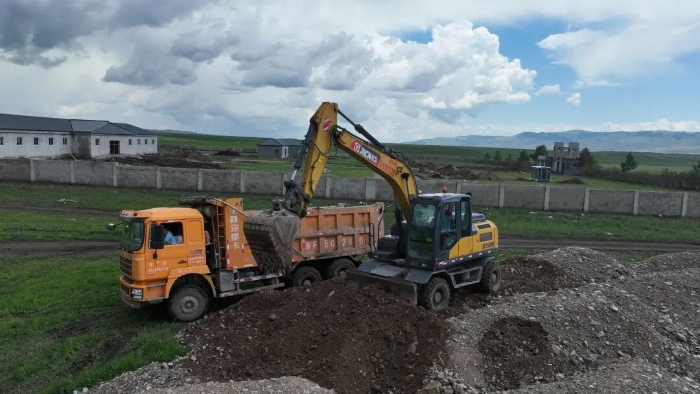 在被譽(yù)為“塞上江南”的西北地區(qū),王老板的事業(yè)迎來(lái)了“第二春”。他擁有的多臺(tái)徐工輪挖設(shè)備,活躍于各類綠化、修路及管網(wǎng)改造工程。王老板特別贊賞設(shè)備的靈活性:“輪挖(在這里)活多,它轉(zhuǎn)場(chǎng)方便?!逼渑鋫涞目鞊Q裝置更能快速切換不同屬具,靈活滿足多樣化施工需求。在海拔兩三千米的高原草場(chǎng),徐工XE150WD參與著歷史悠久的馬場(chǎng)建設(shè),進(jìn)行土石方開(kāi)挖、回填與整平作業(yè)。雨季來(lái)臨時(shí),泥濘的草原常使運(yùn)輸車輛陷入困境,此時(shí)輪挖便化身?yè)岆U(xiǎn)“特種兵”,保障工程順利推進(jìn)。