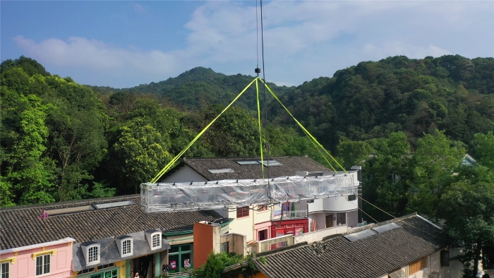 在杭州大清谷影視拍攝基地,一場“靜默式”吊裝正在上演。全球首款四橋八節(jié)臂130噸汽車起重機(jī)——徐工G2代XCT130G8-1,將20米長、2.5噸重的劇組燈架穩(wěn)穩(wěn)送至跨度46米外的房屋上空。而這一“定格”,就是整整三天。