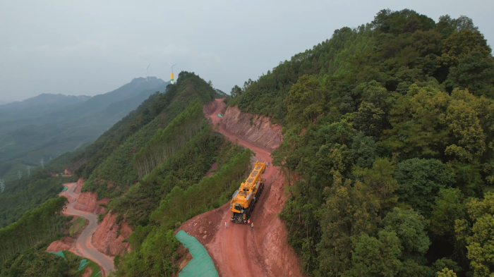 在廣西崇山峻嶺中,徐工XCA4000輪式起重機(jī)憑借“6+2雙動(dòng)力”驅(qū)動(dòng)系統(tǒng),以402.5噸整車(chē)重量完成重載轉(zhuǎn)場(chǎng),在陡峭狹窄的山地中穩(wěn)健行進(jìn)。