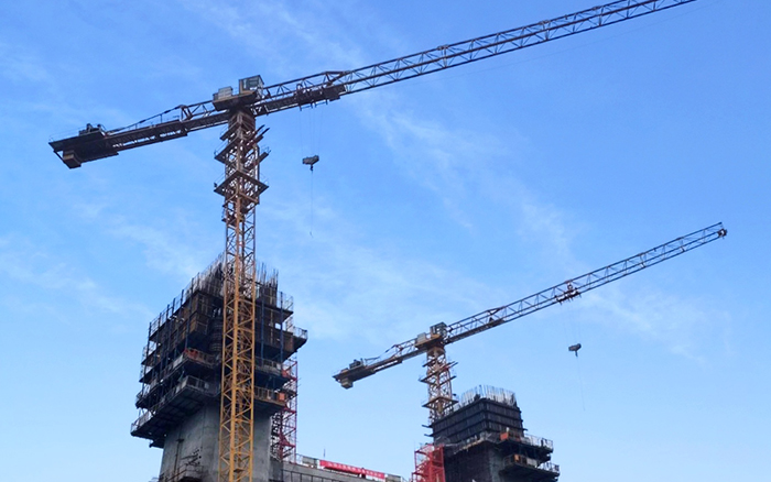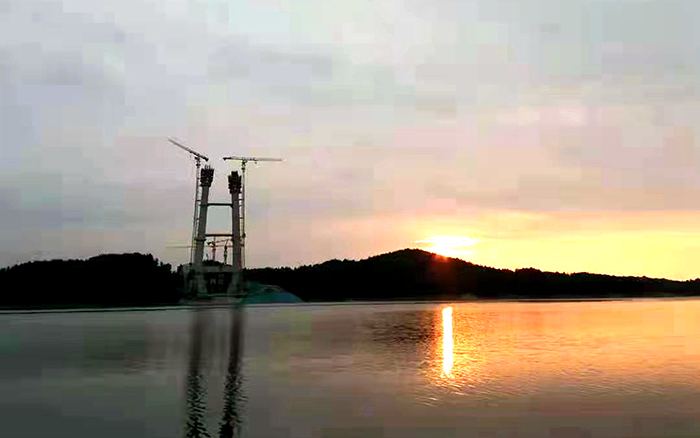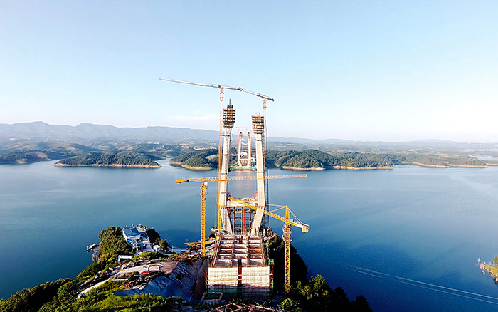 面對高達199米的大橋主塔,“徐工金”克服氣候環(huán)境多變、空氣濕潮等不利因素,憑借“精、準、穩(wěn)”的強悍性能,保障大橋主塔以每天一米的速度節(jié)節(jié)升高,目前大橋主塔已施工過半。
