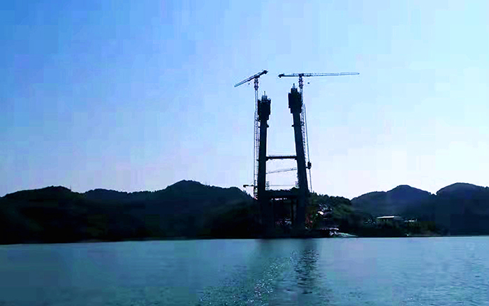 蒼翠群山環(huán)抱,一庫江水清澈。在被譽為“亞洲天池”的丹江口水庫,兩臺XGT7532-20S塔機聳立岸邊,助力著又一個世界級大橋的建設!