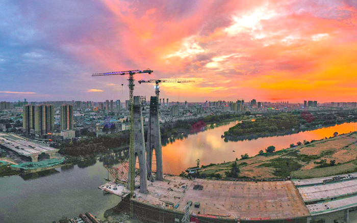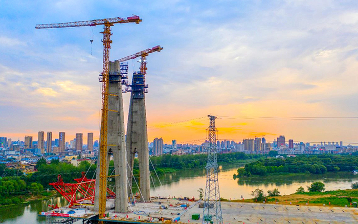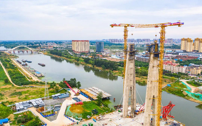 此次參建的項(xiàng)目是阜裕大橋項(xiàng)目,主要承接橋梁主塔的吊裝任務(wù)。阜裕大橋全長(zhǎng)1735米,橋梁長(zhǎng)1127米,主橋采用獨(dú)塔斜拉橋結(jié)構(gòu),主塔高95.6米,主橋斷面為60米超寬幅鋼箱梁,是國內(nèi)市政最寬鋼箱梁橋,建成后將成為阜陽的又一個(gè)“新地標(biāo)”。